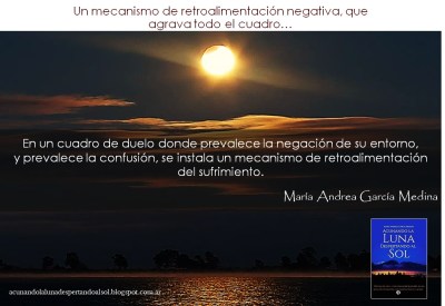La condena social sobre el dolor, la deja a la mujer, en un estado de profunda soledad, aislamiento, indefensión, vergüenza y confusión. La mujer duda, se pregunta y repregunta : está bien o mal esto que estoy sintiendo? No debería estar sintiendo lo que estoy sintiendo… El miedo, la culpa, el autoreproche, y la confusión se suman a un cuadro de retroalimentación del sufrimiento.
